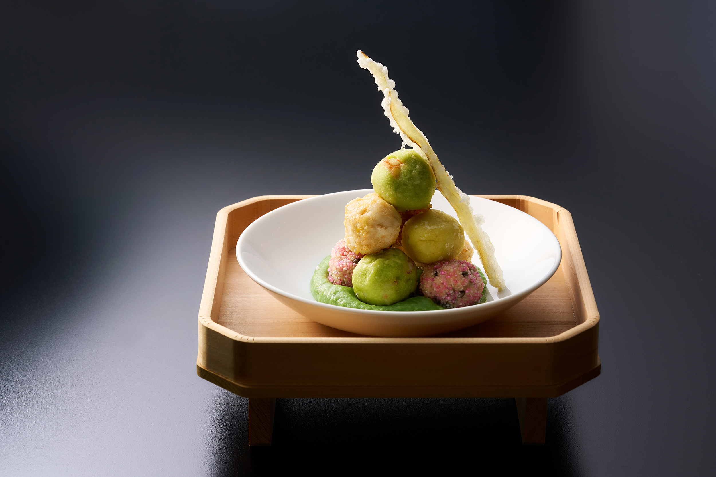 【令和の月見団子の在り方を味と彩りで表現。】 月見団子の名から、団子を供える習わしがよく云われるが、その団子こそが里芋であったことは次第に忘れ去られようとして... -