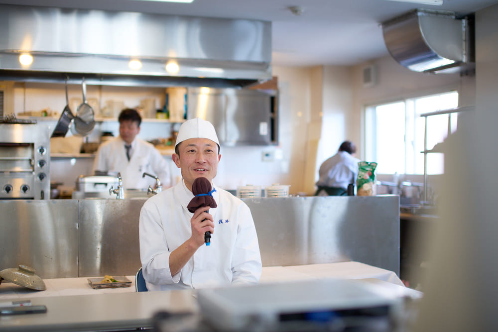 1978年、大阪生まれ。同志社大学法学部を卒業後、銀行員を経て、『神戸たん熊』で日本料理の世界へ。2011年、昭和12年創業の『法善寺 浅草』に入り、四代目店主となる。持ち前の勤勉さで、スッポン・フグ・鱧料理を得意とする割烹の料理を進化させ続けている。